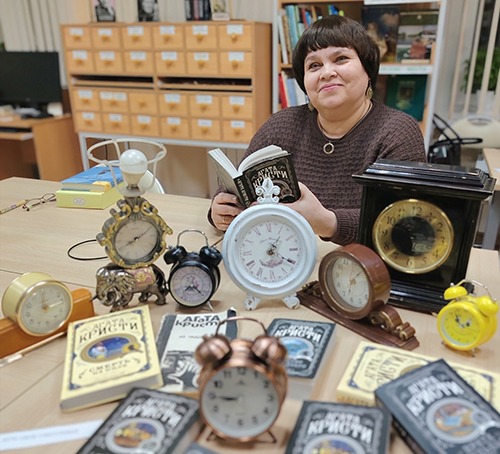В Большеистокской библиотеке прошла встреча книжного клуба «В гостях у Ахматовой», посвящённая роману Агаты Кристи. Участники погрузились в атмосферу классического английского детектива, а особый колорит встрече придала фотозона с выставкой старинных будильников — отсылка к легендарной композиции из семи циферблатов.