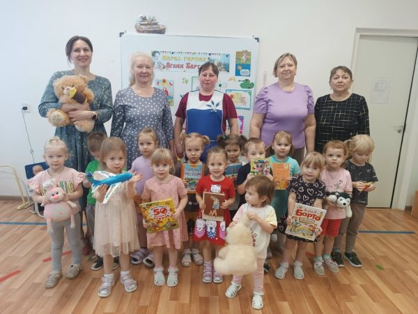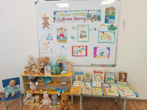 Библиотекари представили чудесную выставку по творчеству поэтессы. Дети из младших групп «Ромашки» и «Анютины глазки» с радостью вспоминали знакомые строчки про самолёт, мишку с оторванной лапой, мячик и бычка.