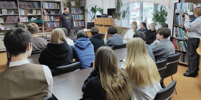 В Городской бибиотеке состоялась встреча восьмиклассников школы № 23 с Богданом Вадимовичем Вологжениновым — директором МАУ «Сысертские вести» и пресс секретарём главы СМО Д. А. Нисковских.