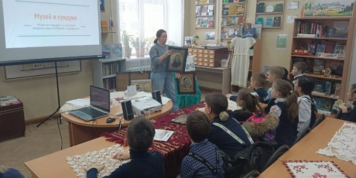 В Двуреченской библиотеке продолжается увлекательный проект «Музей в сундуке», созданный педагогом школы искусств Марией Сергеевной Салахутдиновой. Этот проект – настоящая машина времени, позволяющая юным посетителям прикоснуться к истории и узнать, как жили люди в давние времена.