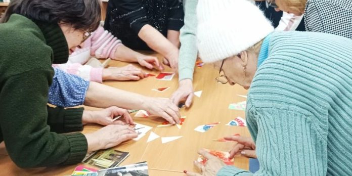 История возникновения первой открытки в России никого не оставила равнодушным. На экране демонстрировались печатные издания, появившиеся в нашей стране на разных этапах нашей истории. Пейзажи, репродукции картин Эрмитажа, корабли, сатирические рисунки, агитационные плакаты — все это отображалось на открытках в разное время. Рассказ дополнили экспонаты, которые принесли гости. Е.В. Абакумова продемонстрировала семейные реликвии — открытки и письма, бережно хранимые в их семье, и рассказала истории, связанные с ними.