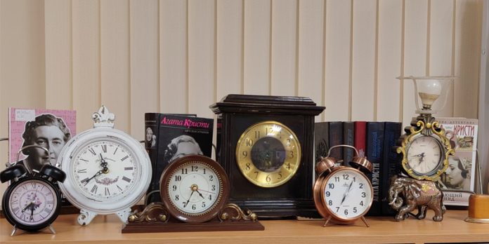 В Большеистокской библиотеке прошла встреча книжного клуба «В гостях у Ахматовой», посвящённая роману Агаты Кристи. Участники погрузились в атмосферу классического английского детектива, а особый колорит встрече придала фотозона с выставкой старинных будильников — отсылка к легендарной композиции из семи циферблатов.