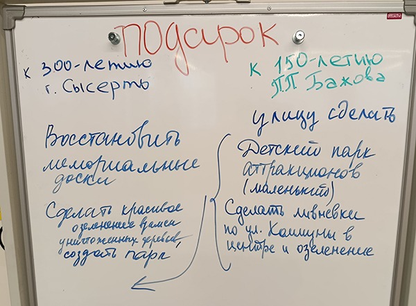 На клип-чарте гости написали свои идеи какой подарок нужен Сысерти на 300-летие и к 150-летию П.П. Бажова