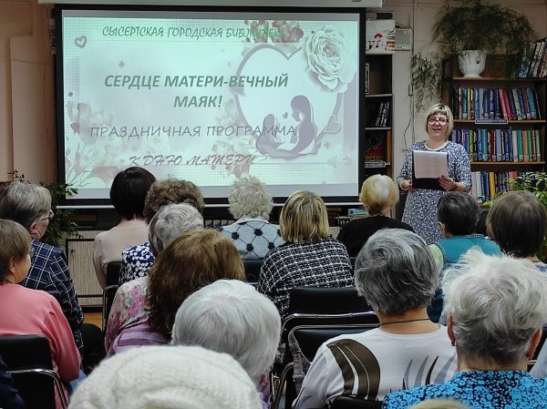 Для всех присутствующих мам звучали прекрасные мелодии в исполнении ансамбля «Серебряные росы», который своими песнями наполнил зал атмосферой настоящего торжества. Эта замечательная встреча состоялась благодаря тесному сотрудничеству библиотеки и Комплексного центра социальной работы с населением. Библиотекари вместе с Инной Ибрагимовной Ворожевой смогли подарить любимым мамам теплые поздравления и незабываемые впечатления.